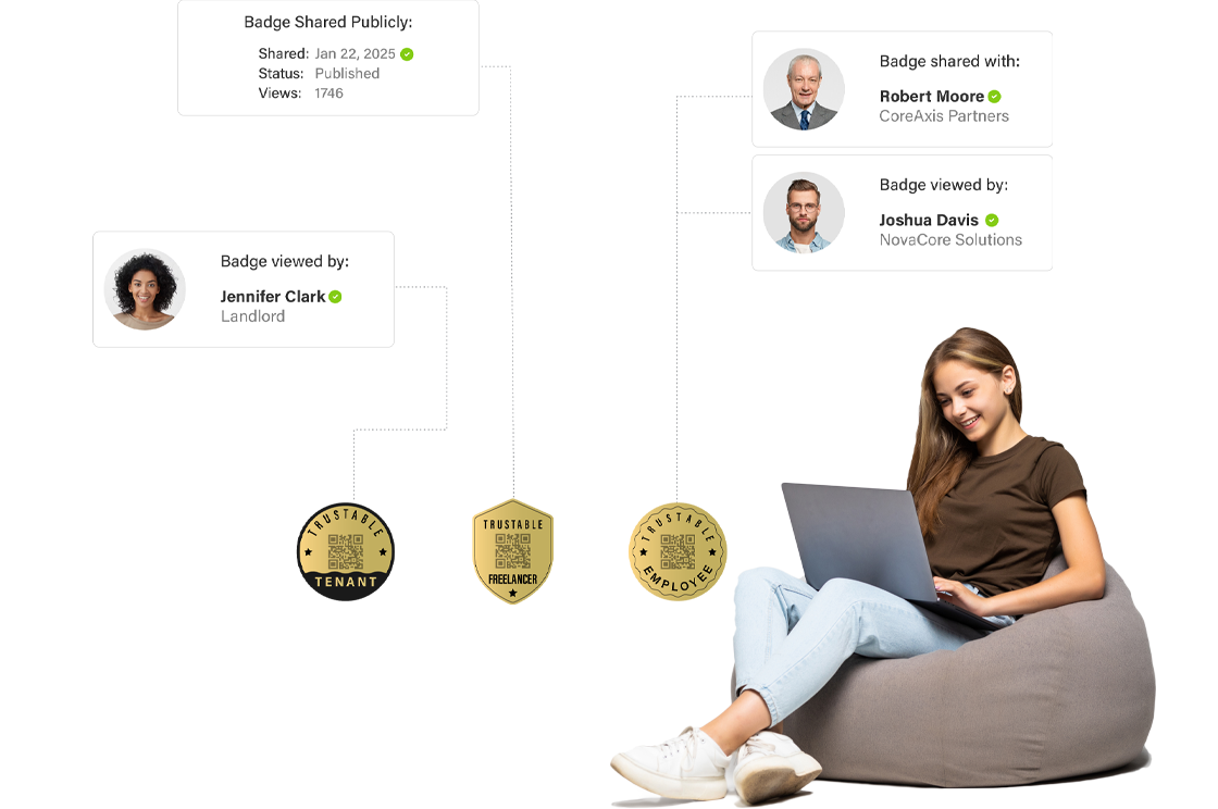 Trustable Badges empower your clients to proudly display their verified credentials, including criminal history, education, employment, and license verifications.